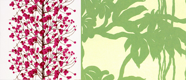 My all-time favorite Marimekko print, Lummarja, $65/yard. The other is Paivantasaaja in green, $42/yard.