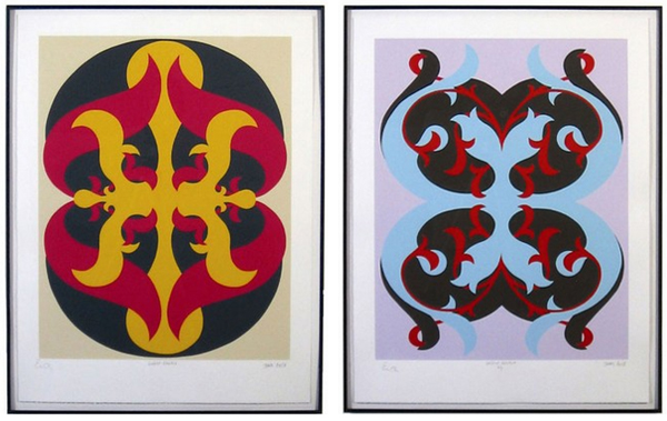 "Magic Language #1 and #2, 2005, silkscreen print, edition of 300. Shadowbox, archival frame, 32x24" each frame. Purchased as a pair with same editioned number. $1,100."