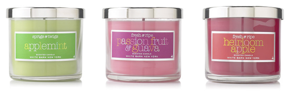 White Barn New York Applemint, Passionfruit & Guava and Heirloom Apple candles, on sale for $5 each. (reg. $9.50)