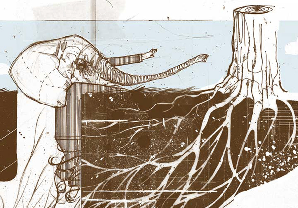 The work of Tra Selhtrow is so lovely. Lots of detailed ink work and fantastic color. I am especially digging his work for sale, namely one of his new art prints: Jonathan Climbing Out of a Hole. The illustrations of cormorants are especially nice as well. See more of his work on his blog: Naked Napkin. Beautiful stuff.
