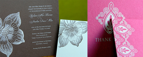 Speaking of checking back with some of the designers I saw at the Stationery Show, just saw that one of my favorite designers at the show, Louella Press, has a full site up with lots of work from thier wedding portfolio. They use the engraving technique for thier cards which I have never seen done in such a modern and forward way. Love the engraving on dark card stocks. They design with a varied style and do traditional, modern and vintage looks that all look amazing. The quality of engraving is superb… gorgeous stuff.